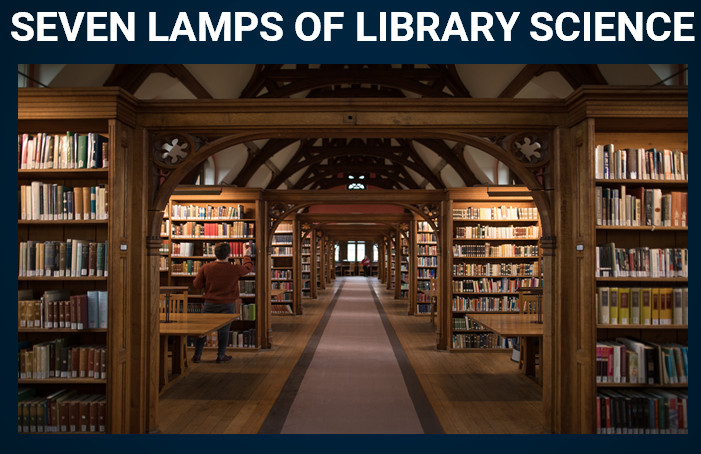 The main role of the library is to help students to learn when they are away from their teachers through creating a learning environment. Service of mankind is its motto of librarian ship. For achieving this, the librarian should follow the seven lamps of library science.