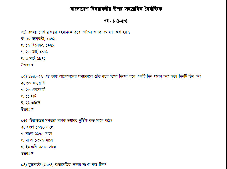 1000+ MCQ ON BANGLADESH AFFAIRS Name of the Document: 1000+ MCQ ON BANGLADESH AFFAIRS Published by: Unknown Collect and share by : study share bd File Size : 3.72 MB Pages : 129 File Format : pdf Credit : Rafiq Azad DownloadLink Share this: Share on X (Opens in new window) X Share on Facebook (Opens in new window) Facebook Like Loading... Related