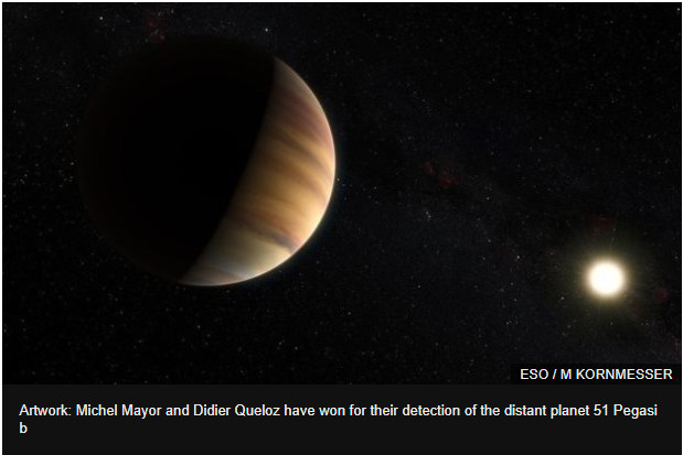 Michel Mayor and Didier Queloz were awarded the prize for finding 51 Pegasi b, a gas giant orbiting a star 50 light-years away.