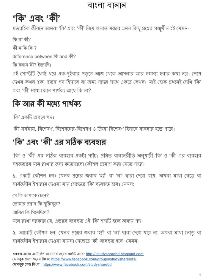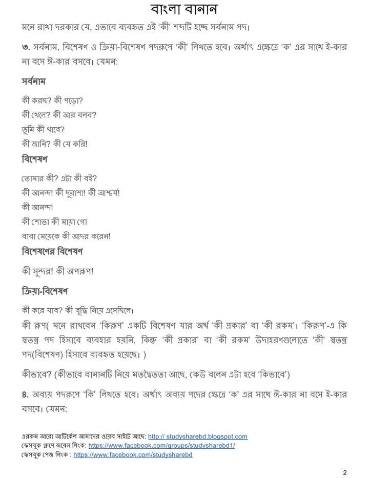 Name of the Document: বাংলা বানান ‘কি’ এবং ‘কী’